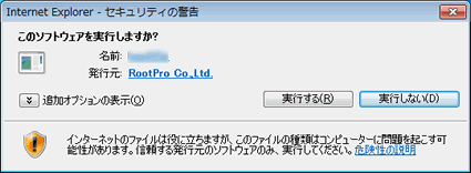 インストールするとき、以下のような [Internet Explorer - セキュリティ警告] 画面が表示されます。